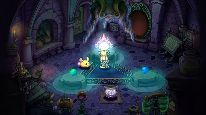 - Familiers – Les joueurs peuvent trouver des œufs et les faire éclore pour adopter des familiers possédant des capacités de soutien “Synchro Effects” très utiles pour aider les joueurs à remporter la victoire dans les combats. Les familiers vivent dans le corral des monstres situé sur le terrain de la maison du joueur et peuvent rapidement devenir plus fort si le joueur les envoie jouer au mini-jeu “Ring Ring Land”.