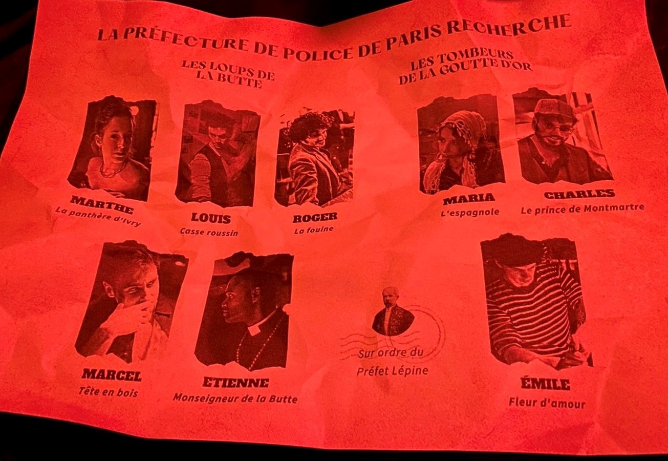 Avant de rentrer au Café Grévin, vous sera attribué un fanion rouge ou bleu selon le clan que vous représentez : Les Tombeurs de la Goutte d’or en bleu, et Les Loups de la Butte en rouge. Une fois les portes passées : lumière tamisée, journaux collés aux fenêtres, regards inquisiteurs des clients… Vous voilà dans un bar clandestin ! Malgré l’alliance, chacun des clans se poste de son côté du bar, et chacun a son chef. Pour Les Loups, il s’agit de Louis, qui préside aussi cette nouvelle alliance; du côté des Tombeurs, nous retrouvons Charles. Reste à savoir si l’alliance est aussi solide qu’elle n’en a l’air…