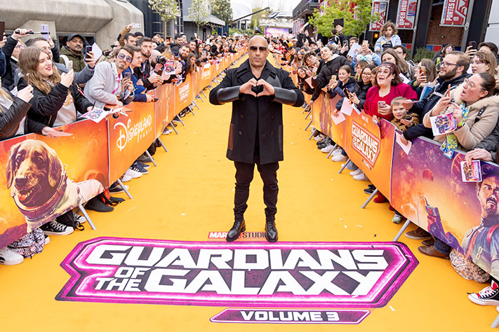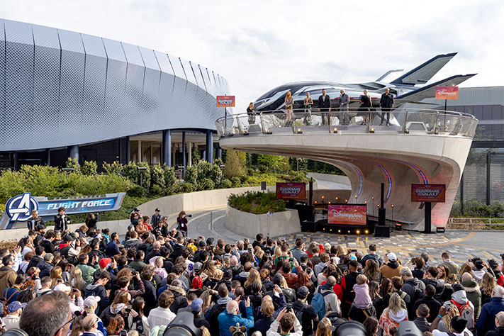 Pour célébrer la sortie du nouveau long métrage Marvel Studios Les Gardiens de la Galaxie Vol. 3, l’équipe du film – Chris Pratt, Zoé Saldaña, Karen Gillan, Pom Klementieff, Vin Diesel et le réalisateur et scénariste James Gunn – s’est rendue à Avengers Campus à Disneyland Paris pour la projection européenne exceptionnelle du dernier chapitre de leurs aventures intergalactiques, dont la sortie au cinéma est programmée pour le 3 mai prochain.