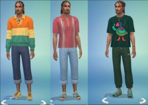 Homme – 7 coiffures, 2 chapeaux, 1 collier, 1 paire de lunettes,18 hauts (+1 à débloquer), 9 bas, 5 chaussures, 3 tenues complètes, 1 bracelet et 1 paire de chaussettes.