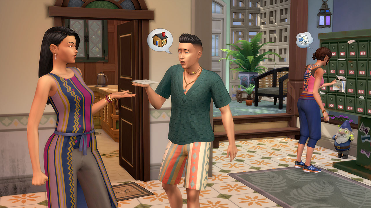 Dans le pack d’extension Les Sims 4 À louer, les Sims peuvent explorer le quartier de Tomarang en tant que propriétaire ou locataire, réparer des pannes d’électricité ou d’eau, s’occuper de voisins pénibles, créer une communauté et même gérer plusieurs locations résidentielles.