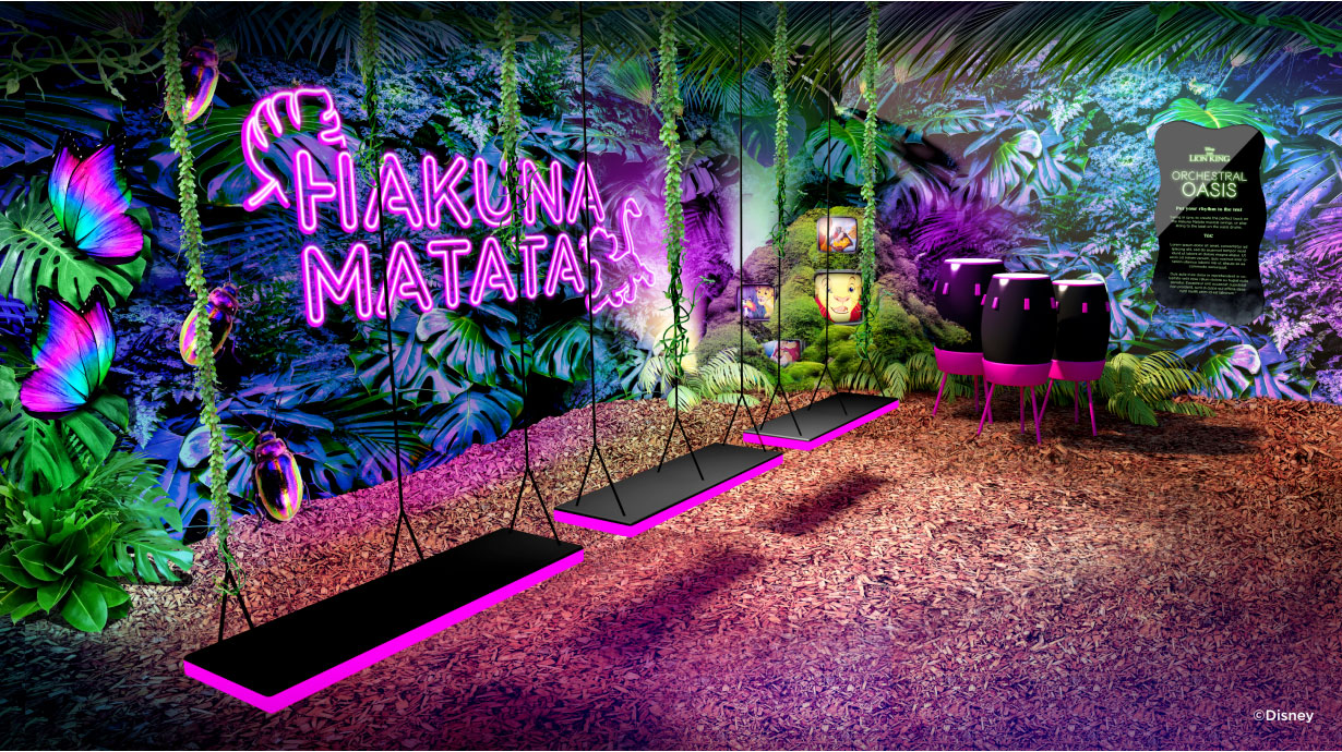L’expérience proposera aux fans de partir à l’aventure dans le jardin mystérieux d’Alice au Pays des Merveilles, de trouver l’équilibre sur les rives de l’Ohana Bay avec Lilo & Stitch, de plonger dans l’Oasis orchestrale du Roi Lion pour une vie sans soucis, ou enfin de célébrer l’amitié avec Mickey et ses Amis. Des activités multisensorielles permettront aux visiteurs de donner vie aux histoires de Disney en réalité augmentée en utilisant Snapchat tout au long de l’expérience.