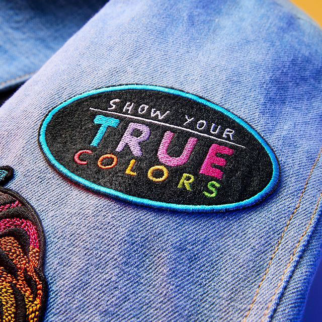 La veste arbore des patches conçus par l’équipe de Life is Strange, inspirés des thèmes et de l’imagerie du récent Life is Strange: True Colors. Elle comporte aussi des motifs de mxmtoon et un patch spécialement créé par la communauté Life is Strange, le gagnant ayant créé un patch qui “montrait ses Vraies Couleurs” en représentant une histoire personnelle forte.