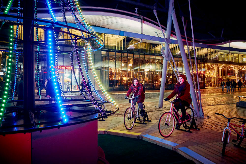 En déambulant d’oeuvre en oeuvre, les promeneurs découvrent des univers qui mêlent illusion visuelle, installation hypnotique, oeuvre immersive et expérience interactive : champ de lucioles, vue d’Amsterdam flottant dans les airs, boule à facette monumentale, mer de lumière bleue, constellations sur le canal de l’Ourcq, sculptures participatives, un arbre s’éclairant au son de la voix et un vélo-sapin de Noël éco-responsable.
