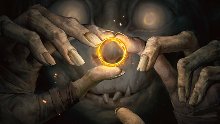 Magic revient en Terre du Milieu avec Magic: The Gathering | Le Hobbit. Les joueur·euses rejoindront Bilbon, Thorin, Gandalf et d’autres célèbres personnages dans leur voyage vers la Montagne Solitaire. Cette extension regorge de trésors inédits et familiers, qui seront dévoilés ultérieurement. Pour l’instant, ces secrets restent cachés en sûreté, car ils sont… PRÉCIEUX.