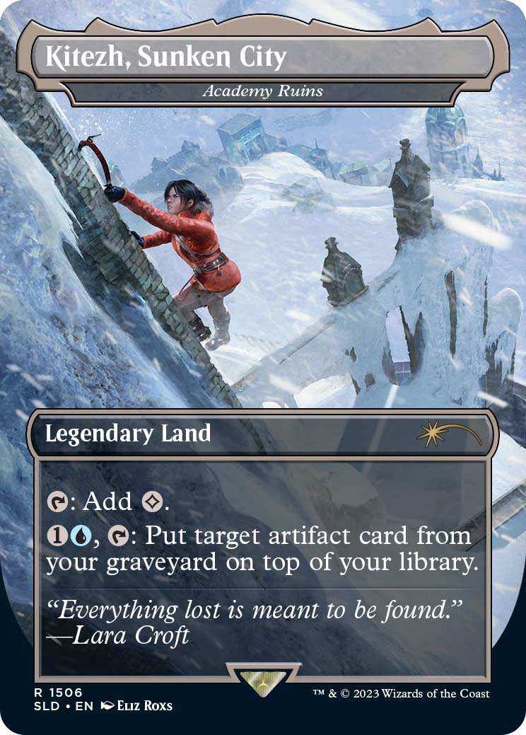 L’exploratrice légendaire Lara Croft a découvert un sanctuaire mystique qui déborde de dangers et de merveilles comme elle n’en avait jamais vu auparavant : le Secret Lair. Dans cette collection, les joueurs pourront retrouver des réimpressions de leurs cartes favorites comme l’Ombrelance et les Ruines de l’Académie avec des illustrations inspirées de la série Tomb Raider, ainsi qu’une toute nouvelle carte aux mécaniques uniques : Lara Croft, Tomb Raider. La chasse aux artefacts rares est peut-être terminée, mais le danger rôde toujours…