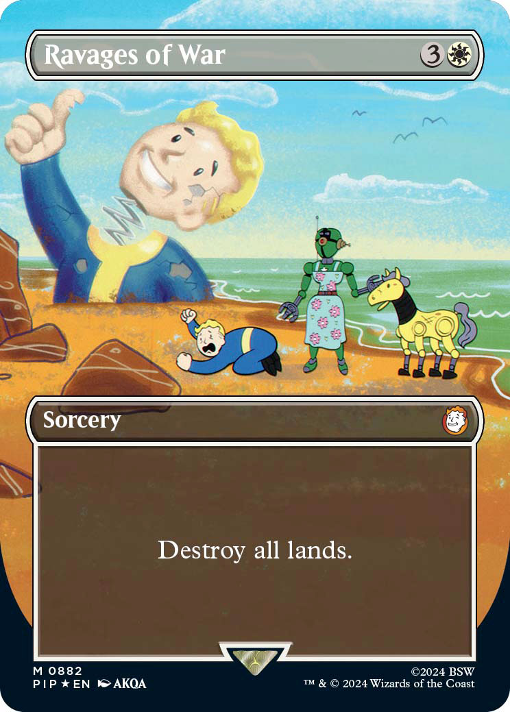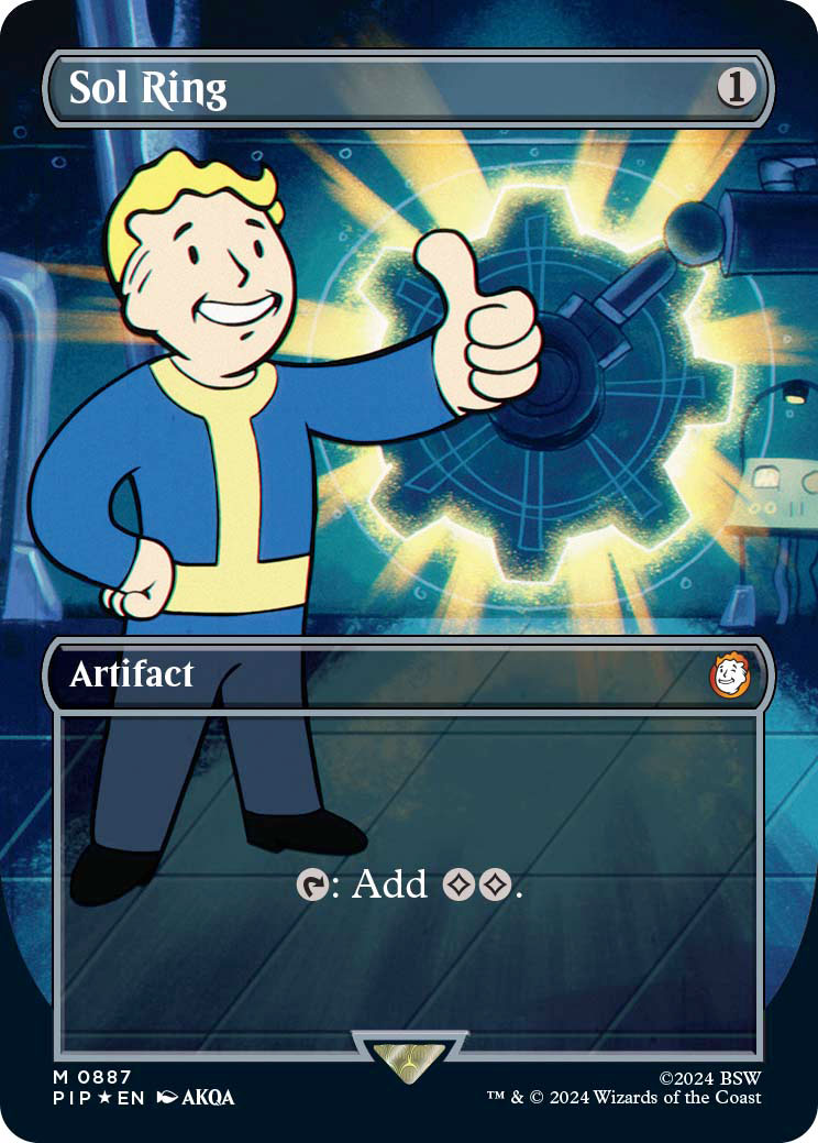 En plus des quatre decks Commander, des boosters collector sont également disponibles. Les joueurs y trouveront des cartes Vault Boy sans bordure et avec des cadres Pip-Boy. En exclusivité dans les boosters, les joueurs pourront découvrir des cartes bobblehead Vault Boy sérialisées. Sept cartes spéciales de cette extension sont sérialisées et ne sont disponibles qu’à 500 exemplaires chacune.