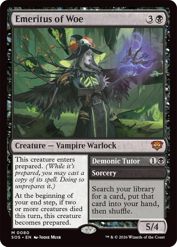 Les Secrets des Strixhaven renferment de nombreuses cartes aux traitements thématiques dont celle de la célèbre Archive Mystique de l’université. Parmi elles, les joueur·euses pourront découvrir l’Émérite de l’idéation sérialisé, une carte mythique limitée à 500 exemplaires en anglais, trouvable uniquement dans les boosters collector. Cette carte met en avant la nouvelle mécanique Préparation. Une fois l’Émérite de l’idéation préparé, les joueur·euses peuvent lancer le célèbre sort Rappel ancestral. Une version standard de cette carte est également disponible avec diverses illustrations dans les boosters de jeu et les boosters collector.
