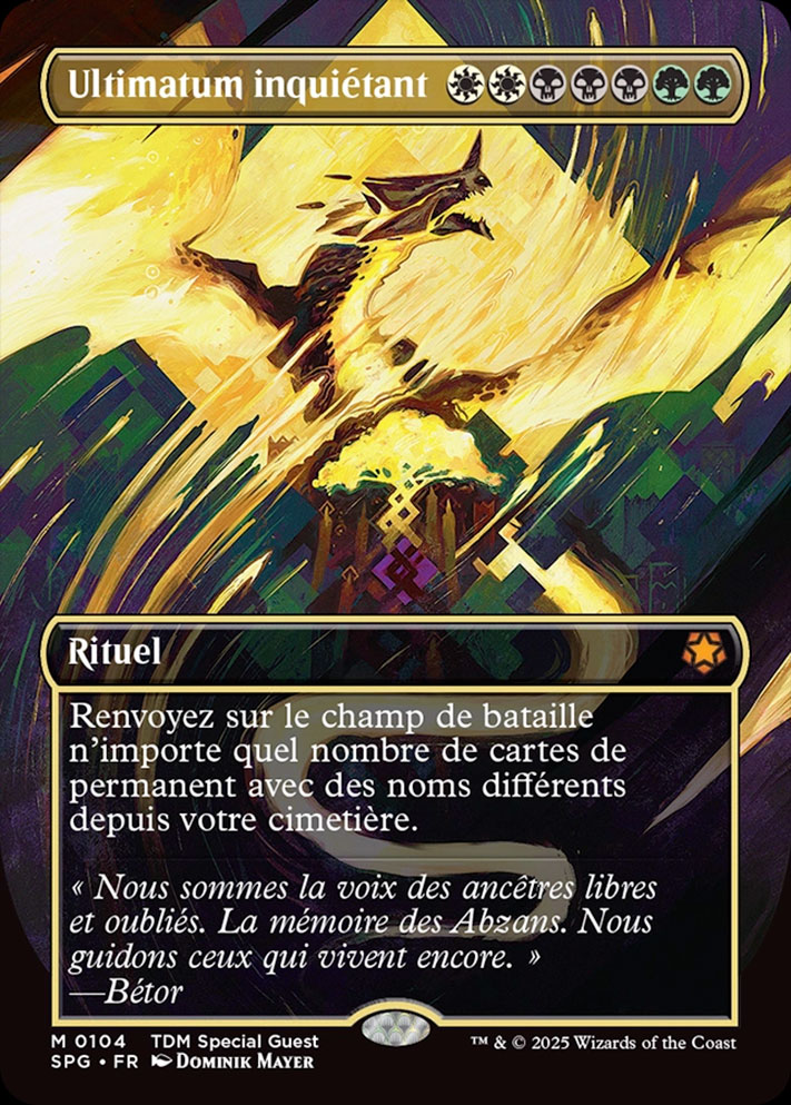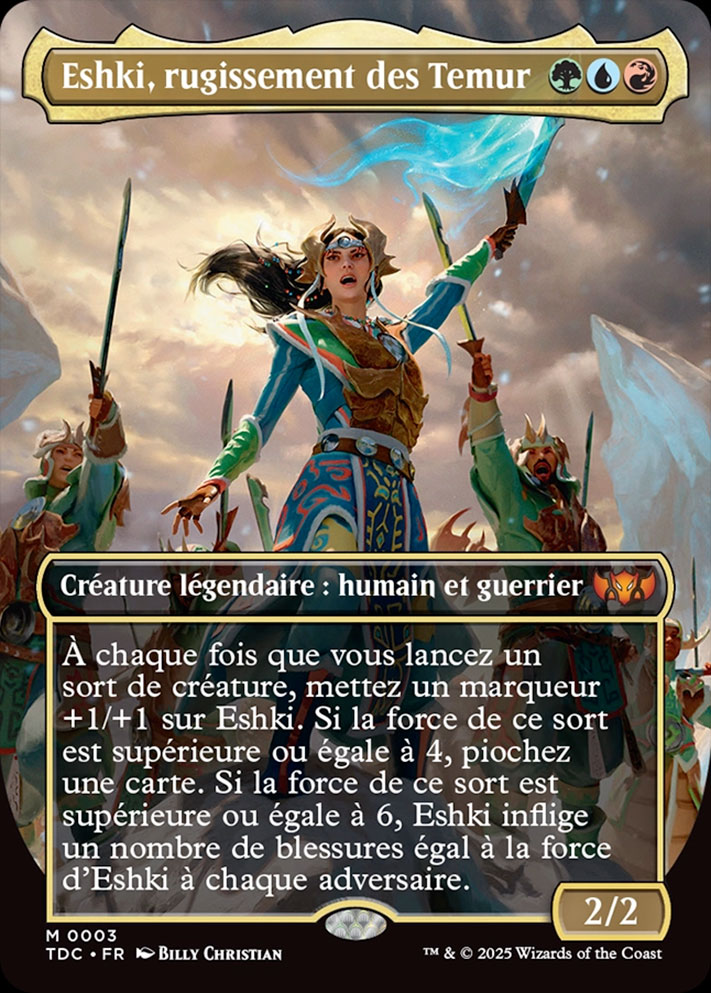 L’histoire de Tarkir est riche et complexe. Cette nouvelle extension propose une gamme de traitements qui honorent l’héritage des clans et des dragons. Les cartes draconiques célèbrent les dragons sauvages avec un cadre thématique, tandis que les cartes Clans sans bordure donnent vie aux cinq factions grâce à un thème commun. L’influence du légendaire dragon-esprit Ugin se manifeste sur Takir à travers de nouvelles cartes Ectofeu, des illustrations spéciales et des cadres de cartes imprégnés de la présence éthérée d’Ugin.
