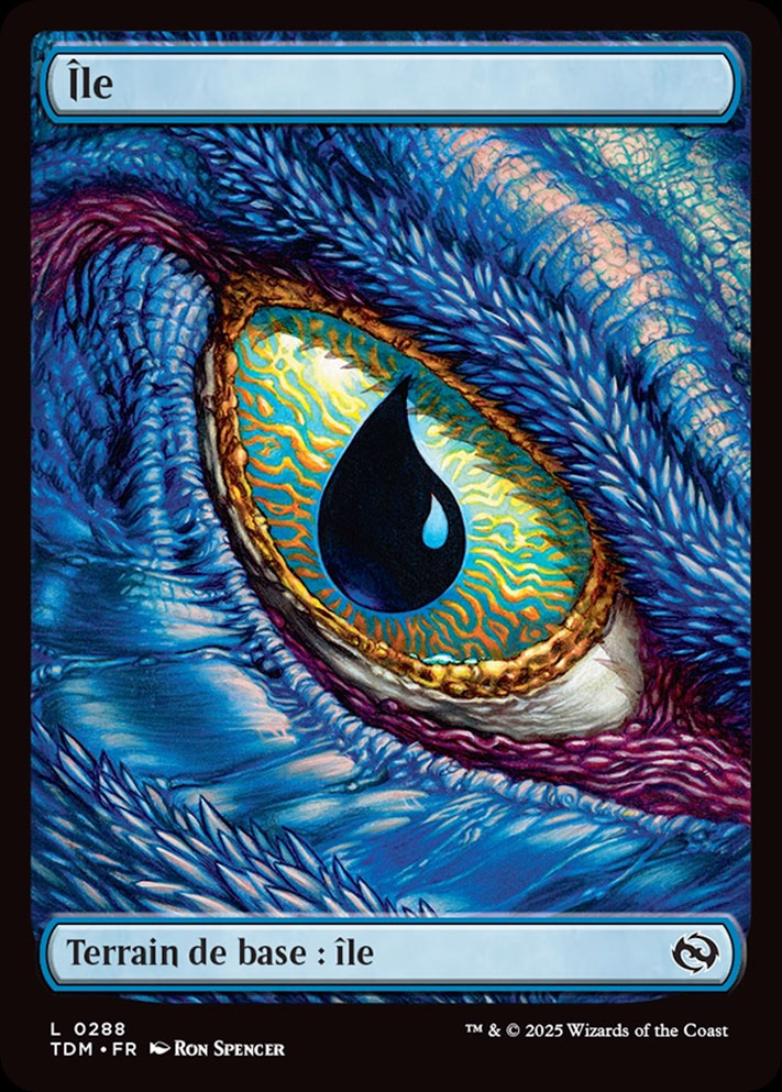 La présence des dragons peut être ressentie sur tout Tarkir alors que des ombres inquiétantes se profilent sur les nouvelles cartes de terrain pleine illustration qui donnent une bonne idée de la taille de ces bêtes colossales. Tarkir : la tempête des dragons propose également un second traitement pleine illustration pour les terrains qui permet de regarder les terrifiants dragons droit dans les yeux.