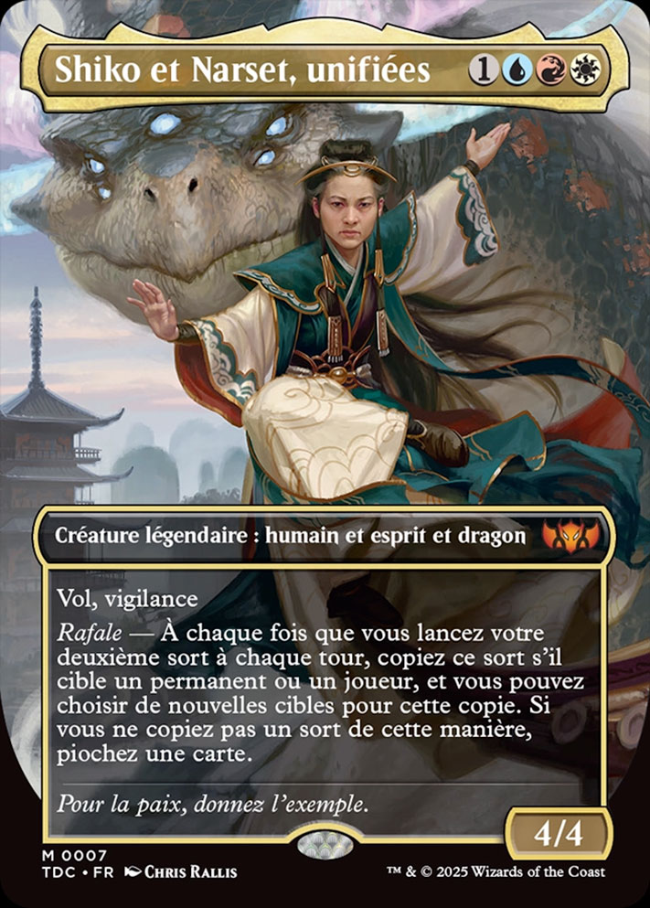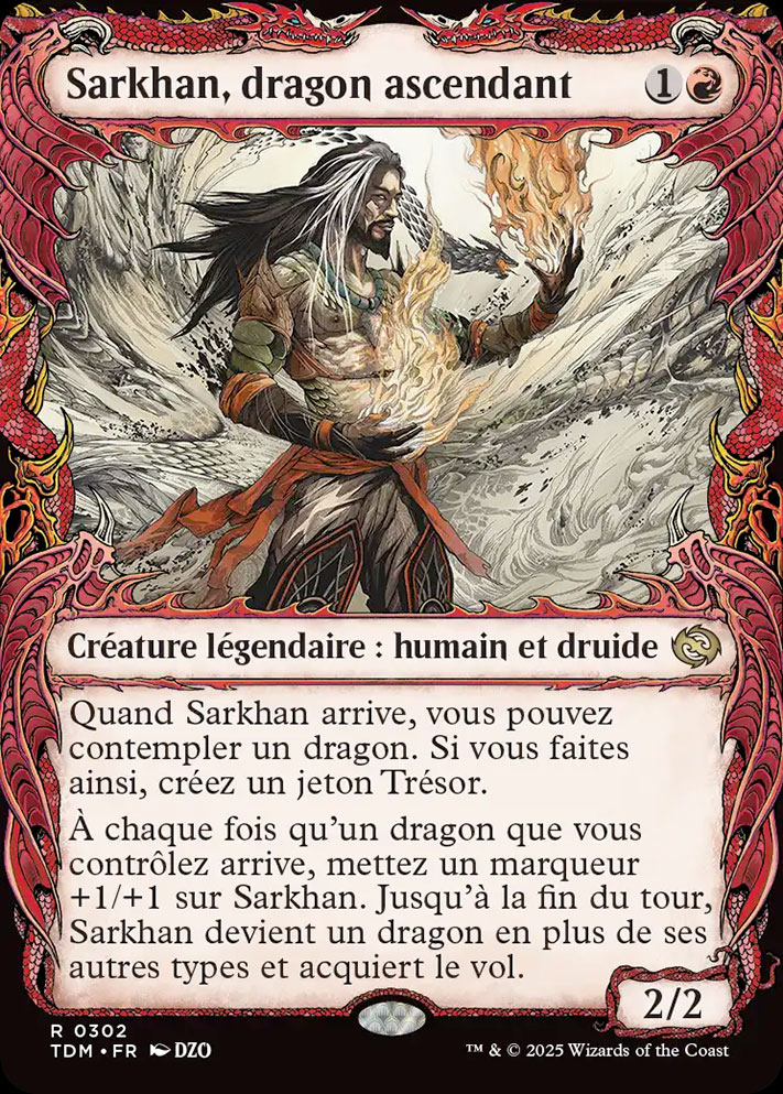 L’histoire de Tarkir est riche et complexe. Cette nouvelle extension propose une gamme de traitements qui honorent l’héritage des clans et des dragons. Les cartes draconiques célèbrent les dragons sauvages avec un cadre thématique, tandis que les cartes Clans sans bordure donnent vie aux cinq factions grâce à un thème commun. L’influence du légendaire dragon-esprit Ugin se manifeste sur Takir à travers de nouvelles cartes Ectofeu, des illustrations spéciales et des cadres de cartes imprégnés de la présence éthérée d’Ugin.