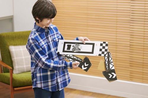 Pilotez un kart dans le monde réel en utilisant les commandes bien connues de Mario Kart et suivez toute l’action de la course sur votre console ou votre téléviseur grâce à la caméra embarquée de votre bolide ! Voyez votre salon se transformer en circuit aquatique, désertique et bien d’autres décors issus de la série Mario Kart !