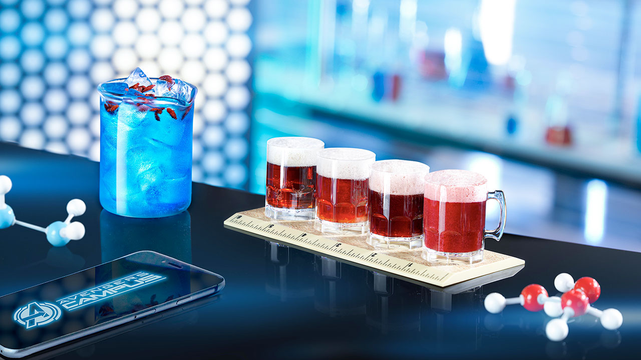 Le food truck WEB – Worldwide Eating Brigade – proposera une sélection de nouilles asiatiques et de boules de coco. Tandis que le FAN-tastic Food Truck, cher à Tony Stark, servira des hot dogs new-yorkais, dont une version vegan, avec divers types de sauces et garnitures ; ainsi qu’un cheesecake servi sur un bâtonnet. Le campus accueillera également le Super Diner, un petit restaurant à l’américaine proposant des sandwichs Reuben, une recette traditionnelle composée de corned-beef, de fromage, de choucroute et d’une savoureuse sauce servis entre deux tranches de pain de seigle.