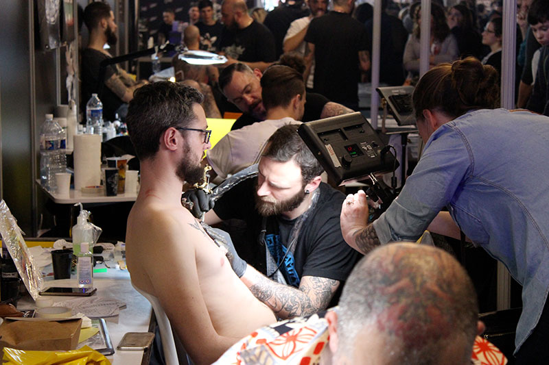 Comme chaque année, les concours seront les moments cruciaux de la convention. Loin de mettre les artistes en compétition, ces défilés de tatoués permettent avant tout aux tatoueurs d’exposer leurs créations au grand public. Meilleur dos, meilleur large couleur, meilleur petit noir et gris… les plus beaux tatouages du Mondial sont consacrés par un jury de tatoueurs légendaires, réunis exclusivement pour l’occasion : Filip Leu, Bill Salmon, Luke Atkinson, Kari Barba et cette année encore Mark Mahoney.