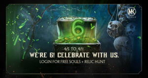 Pendant une durée limitée, l’événement « Chasse aux reliques » sera également de retour dans le cadre de la célébration du sixième anniversaire de Mortal Kombat Mobile, et sera disponible du 5 au 12 avril. Ce mode défi adoré des fans permet aux joueurs de se battre dans une succession de tours avec une unique mission : libérer Shao Kahn. Des reliques vous attendent au sommet de chaque tour contenant des fragments de l’esprit de Shao Kahn cachés par les Dieux Anciens. Lorsque suffisamment de fragments d’esprit sont rassemblés, le joueur débloque une carte Shao Kahn Diamant qui peut être améliorée jusqu’au niveau de Fusion X. Mortal Kombat Mobile offrira aussi 50 âmes gratuites chaque jour pendant une semaine, du 5 au 11 avril.