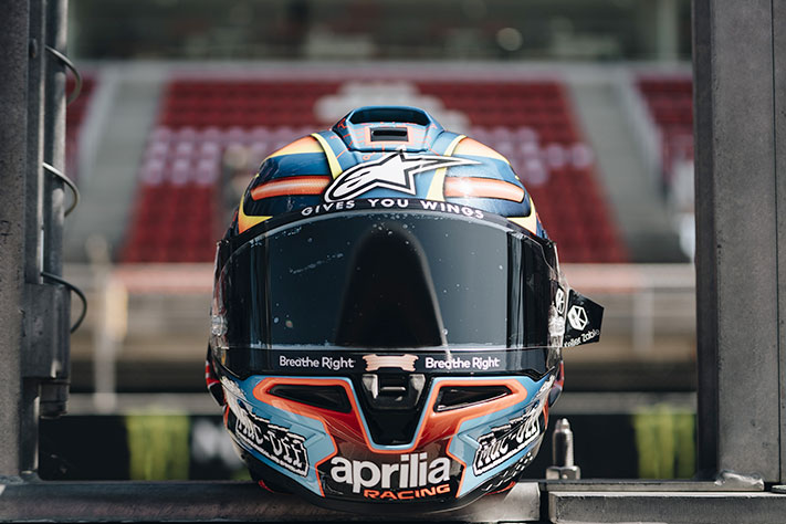 Ce modèle unique sera porté par le Champion du monde en titre, Jorge Martín (Aprilia Racing), à l’occasion du Monster Energy Grand Prix de Catalogne.