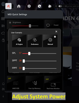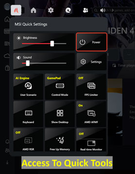 Ouvrez les paramètres rapides de MSI en un clic pour utiliser les outils et ajuster les paramètres d’alimentation