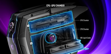 Le MEG Aegis Ti5 est le premier PC au monde à être équipé en série d’une poignée avec écran OLED. Grâce ce nouveau système intuitif situé à l’avant de la machine, les joueurs peuvent rapidement basculer entre les différents paramètres de performance du système et afficher son état en temps réel. Le bouton fonctionne également comme raccourci vers les jeux enregistrés, afin de pouvoir leur attribuer un profil dédié qui ajustera les performances au lancement de chaque jeu.
