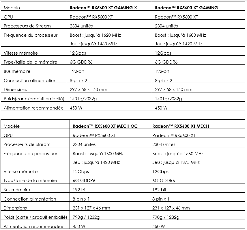 Les nouvelles cartes graphiques de la série MSI Radeon RX 5600 XT GAMING / MECH seront disponibles en France courant janvier 2019.