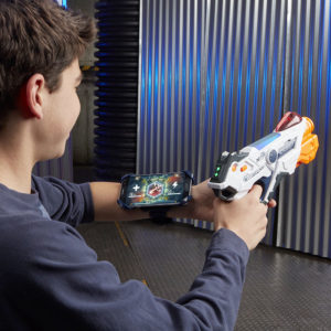 Le LASER OPS PRO ALPHAPOINT DISPONIBLE SEUL OU EN PACK DE DEUX a également été récemment annoncé, et propose pour tous ceux qui connaissent NERF une toute nouvelle expérience de jeu. Les blasters tirent une rafale Infra Rouge unique à chaque pression de la gâchette et enregistrent les impacts avec des sons et lumières, pendant que des lumières au dos indiquent les vies et la quantité de munitions. Les joueurs peuvent enrichir l’expérience avec l’application mobile gratuite Nerf Laser Ops en utilisant le bracelet inclus pour accrocher un appareil smartphone à leur bras. Grâce à l’application, les joueurs peuvent également accéder à des infos tactiques en temps réel qui leur permettent de personnaliser leur blaster, de suivre leurs performances, de gagner des bonus et d’utiliser le GPS pour localiser leurs adversaires pendant la compétition. La révolution NERF est lancée !