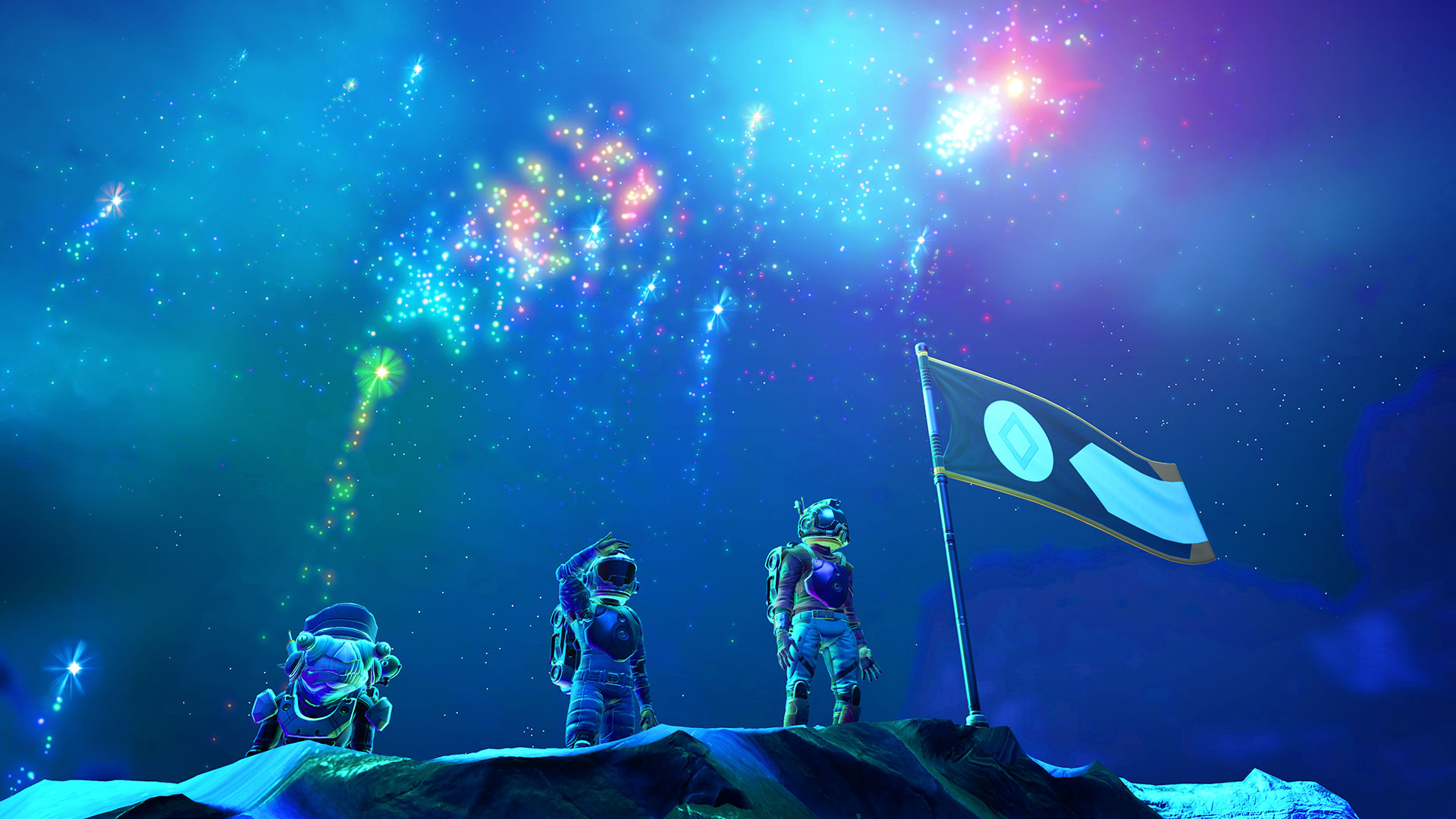 - Missions communautaires : Une nouvelle mission de recherche communautaire permettra aux joueurs de partager leur progression lorsqu’ils suivront un objectif commun. Les joueurs pourront découvrir ensemble le monde de la mise à jour « Visions » et débloquer le casque « L’œil de Korvax », tout comme de nouvelles émoticônes et pièces de construction.