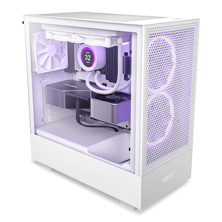 L’objectif du H5 Flow est d’obtenir un maximum de refroidissement pour vos composants grâce à son panneau avant perforé. Le ventilateur inférieur est incliné de façon optimale pour faire circuler l’air chaud vers le haut plus rapidement et ainsi permettre au châssis de rester plus frais. Le H5 Flow est disponible dans les coloris entièrement blanc ou entièrement noir pour convenir à tous les styles.