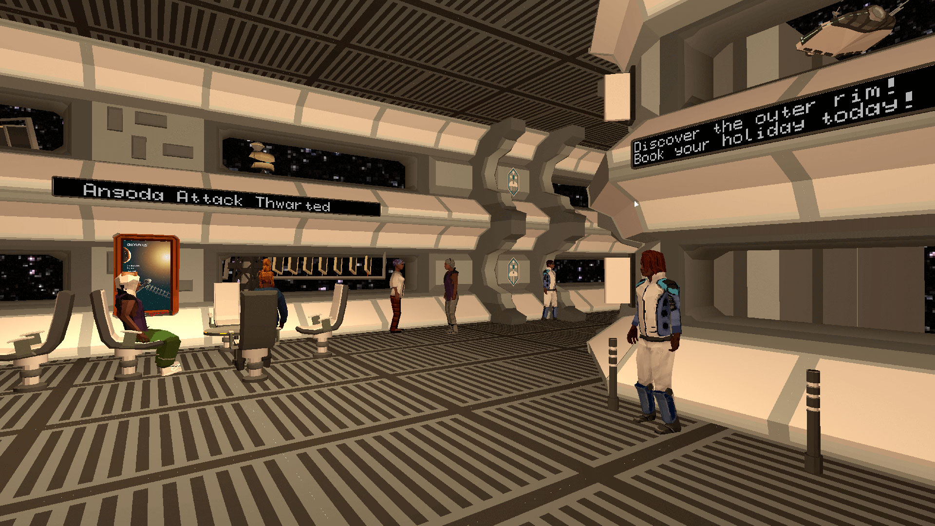 Le temps passe vite dans le monde d’Objects in Space. Il n’y a pas de dialogues répétitifs de PNJ, les choix et les décisions sont définitifs et engendrent de sérieuses répercussions. Il faut jouer plusieurs fois les 3 mois que durent l’aventure d’Objects in Space pour découvrir tout le contenu narratif du jeu qui comporte 100 quêtes.