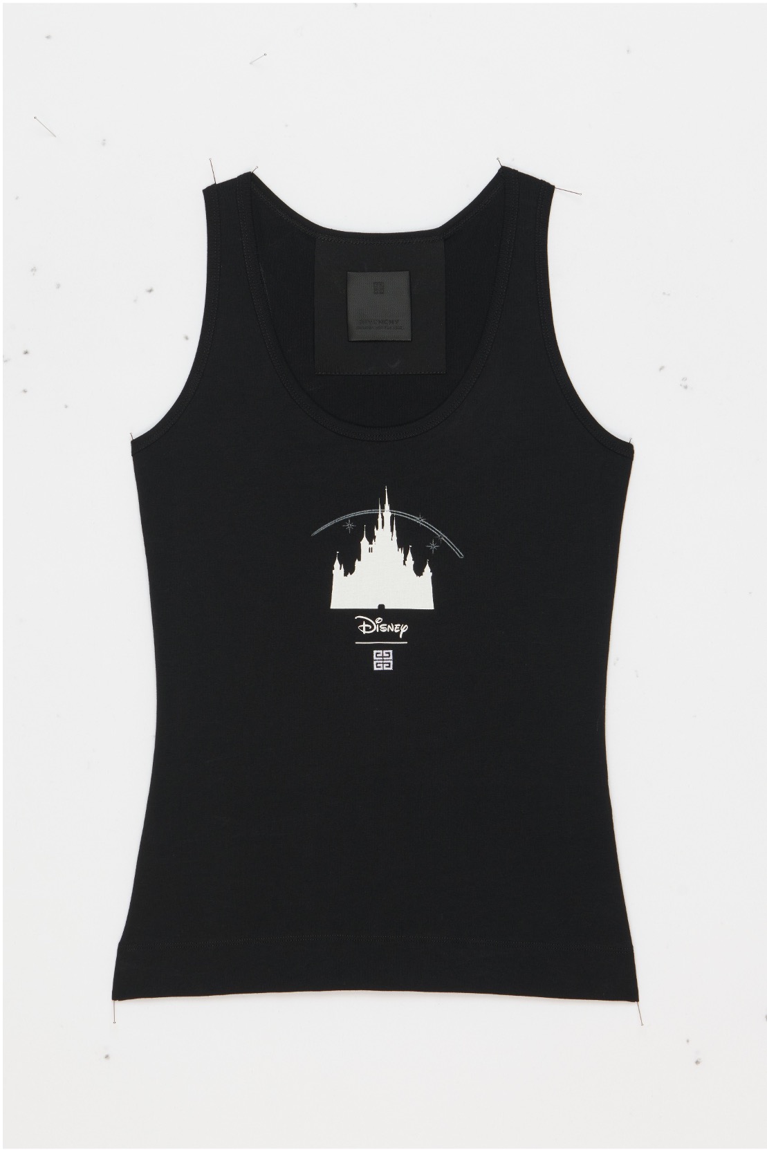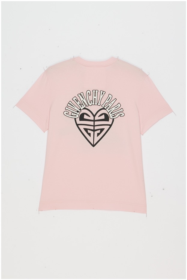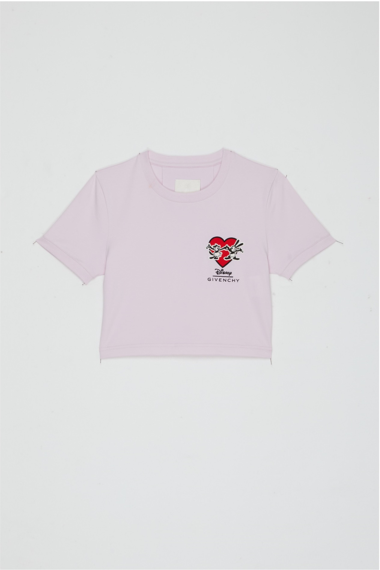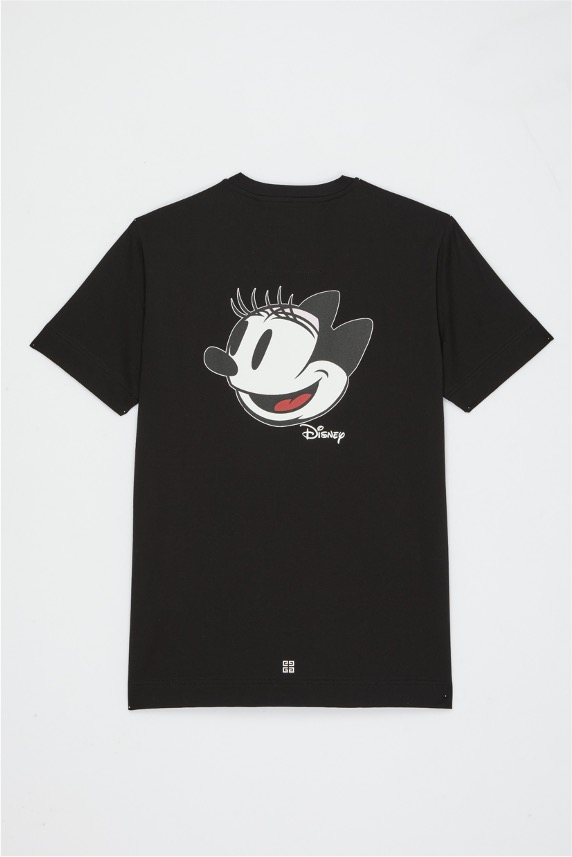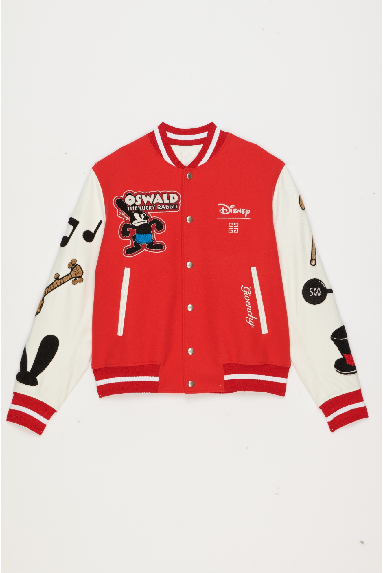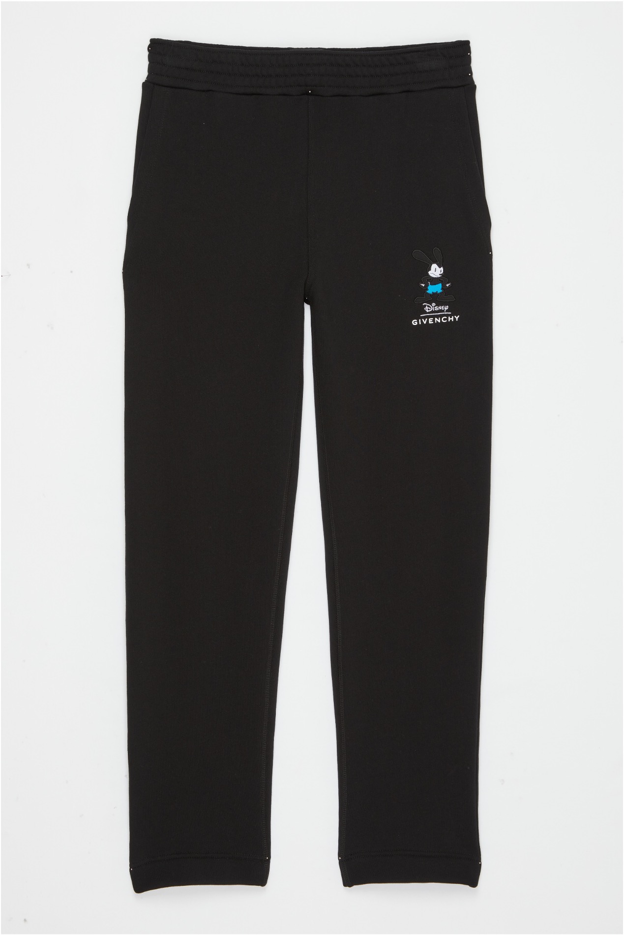 Parmi les essentiels pour les femmes, on trouve un teddy bleu à manches blanches avec les lettrages Givenchy et Paris montrant Oswald le lapin chanceux offrant une fleur à sa dulcinée, Ortensia. Sur une chemise oversize rouge vif et un ensemble de sport avec un short, Oswald apparaît sur un cheval en chantant. Les deux personnages reviennent tels des graffitis, à travers des motifs multicolores sur les jeans et les vestes. Les t-shirts aux multiples couleurs transmettent des messages d’amour et relatent la magie d’une visite à Paris, tandis que les sweats à capuche, les débardeurs et les pantalons de survêtement incorporent l’emblème 4G, stylisé en cœur, et le Magic Kingdom, en blanc cassé.