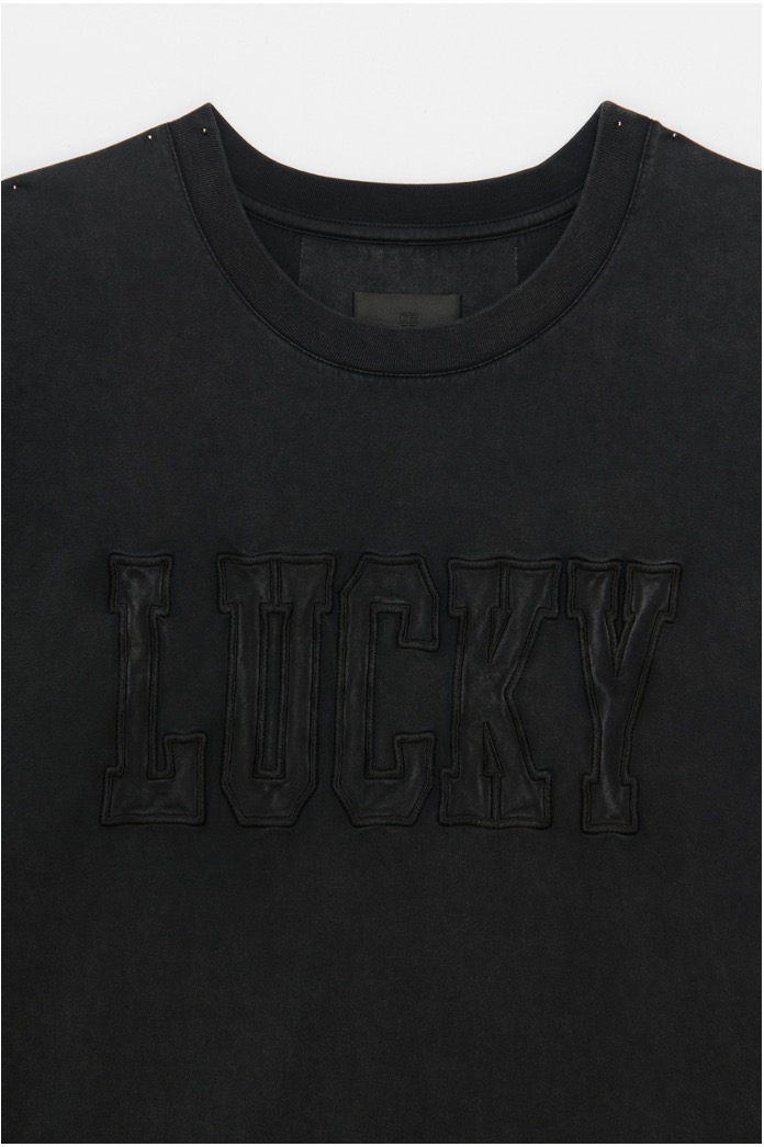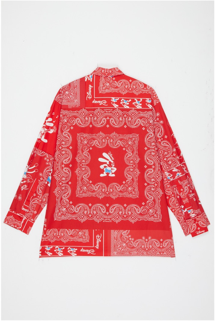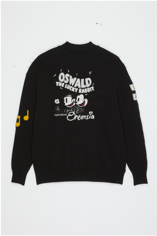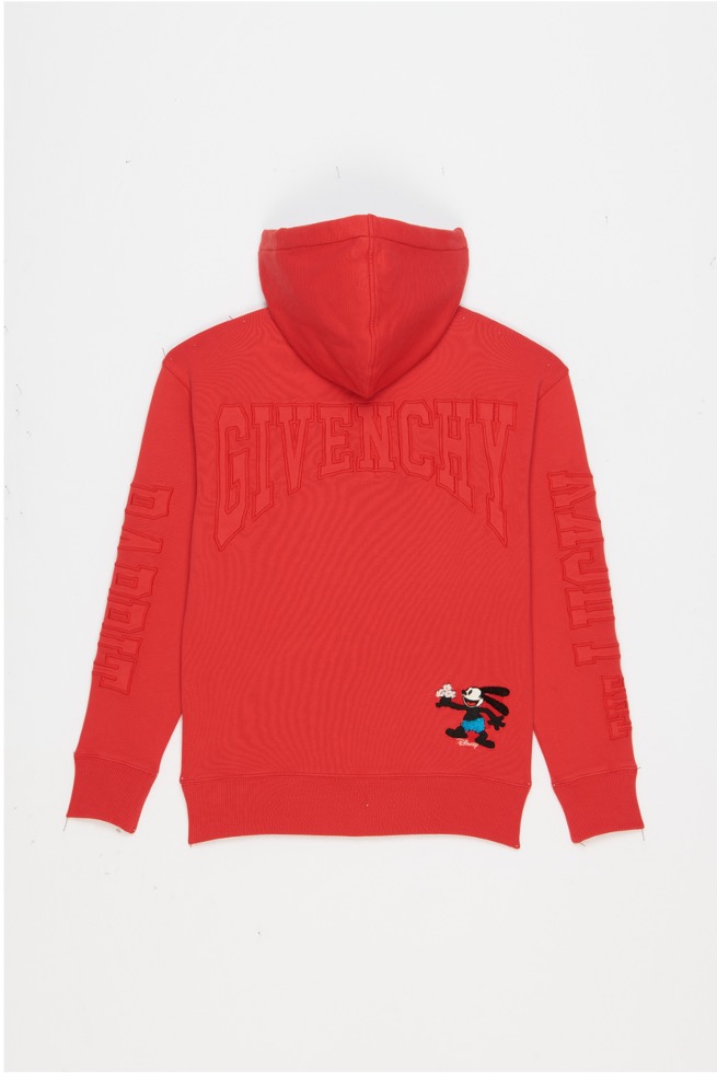 Pour les hommes, un teddy rouge montre Oswald en train de chevaucher un cheval sauvage jusqu’à Los Angeles, tandis qu’on retrouve le personnage entouré de motifs bandana sur une chemise bleue. Sur les jeans, on retrouve Oswald accompagné d’un fer à cheval rouge porte-bonheur. Des t-shirts avec les lettres GIVENCHY affichent des mots et des lieux clés, tels que « Lucky » et « New York City ». Sur les sweat-shirts et les ensembles de survêtements, on le découvre prêt à se battre.