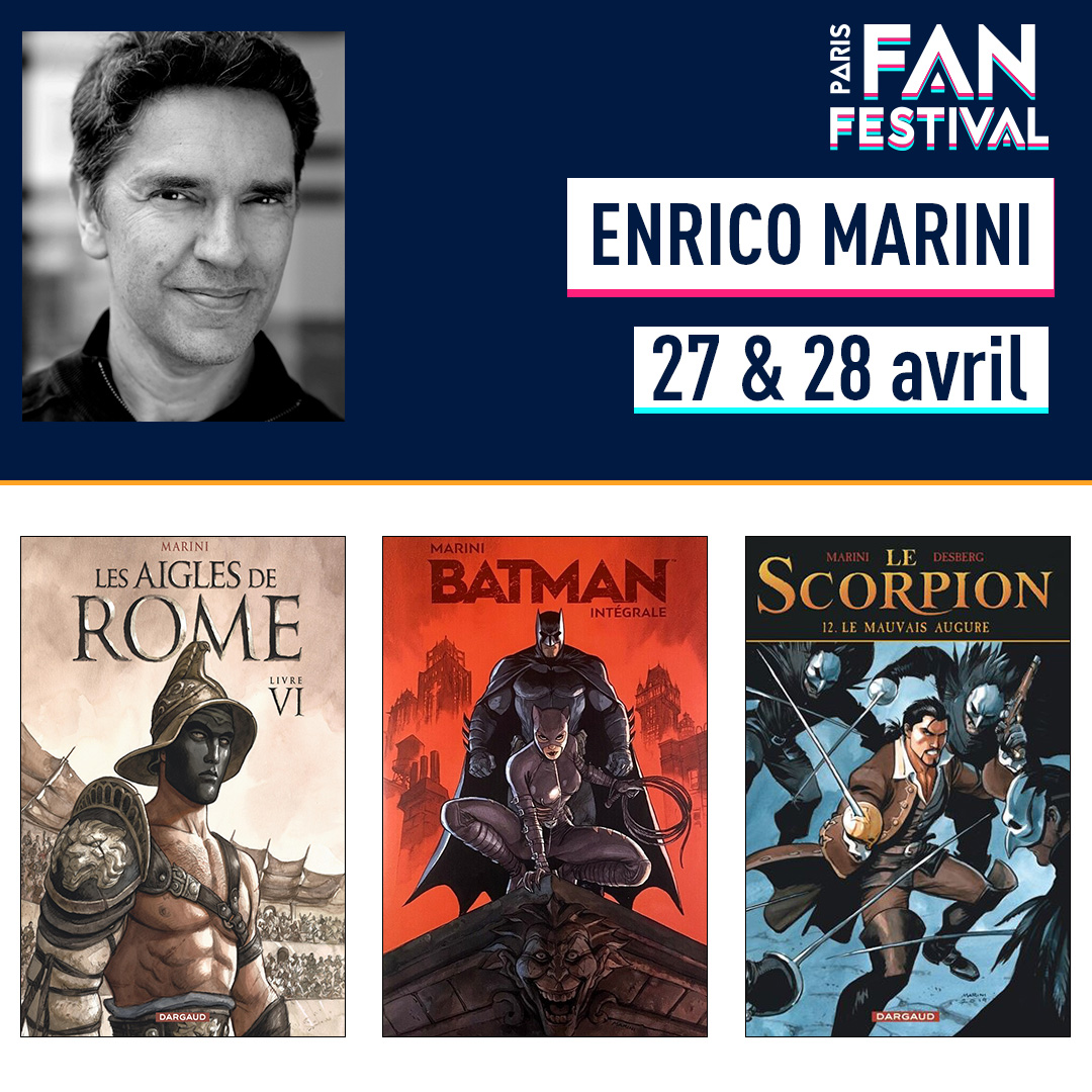 - Enrico Marini, incontournable auteur de BD franco-belge notamment à l’origine du polar Noir Burlesque : Les Aigles de Rome ou encore de Batman : The Dark Prince Charming.