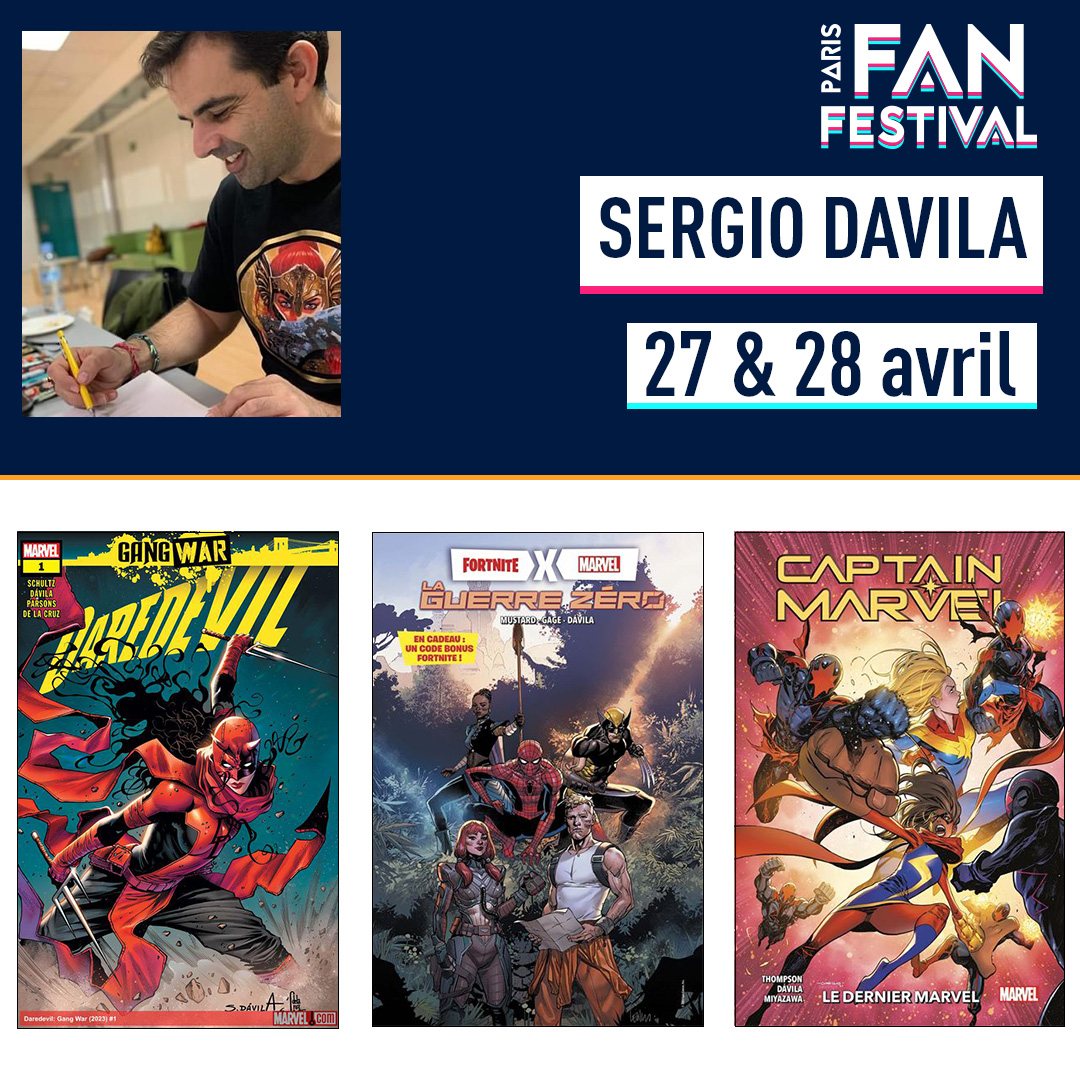 - Segio Davila, un artiste qui aime associer ses deux passions : les comics et les jeux vidéo présentera entre autres son ouvrage crossover entre Marvel et Fortnite.