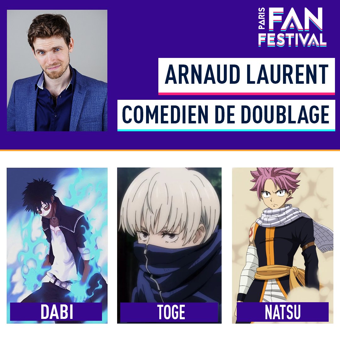 - Arnaud Laurent, qui incarne notamment Dabi dans My Hero Academia et Toge dans Jujutsu Kaisen