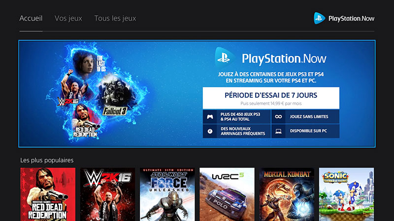 4 mois après son lancement en France, le PlayStation Now, service qui permet aux joueurs PlayStation 4 et PC de profiter de plus de 500 jeux PS4 et PS3 en streaming, voit son prix baisser mais aussi obtenir une nouvelle interface.