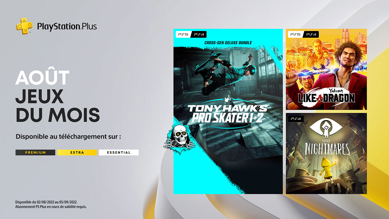 Sony Interactive Entertainment a annoncé les jeux PlayStation Plus du mois d’août qui seront disponibles pour les abonnés au service. Au programme : Plongez dans le monde de la mafia japonaise avec Yakuza: Like a Dragon. Prenez votre skate et devenez le meilleur avec Tony Hawk’s Pro Skater 1+2. Affrontez les terreurs d’un univers sombre dans Little Nightmares. Les jeux du mois d’août seront disponibles du 2 août au 6 septembre.