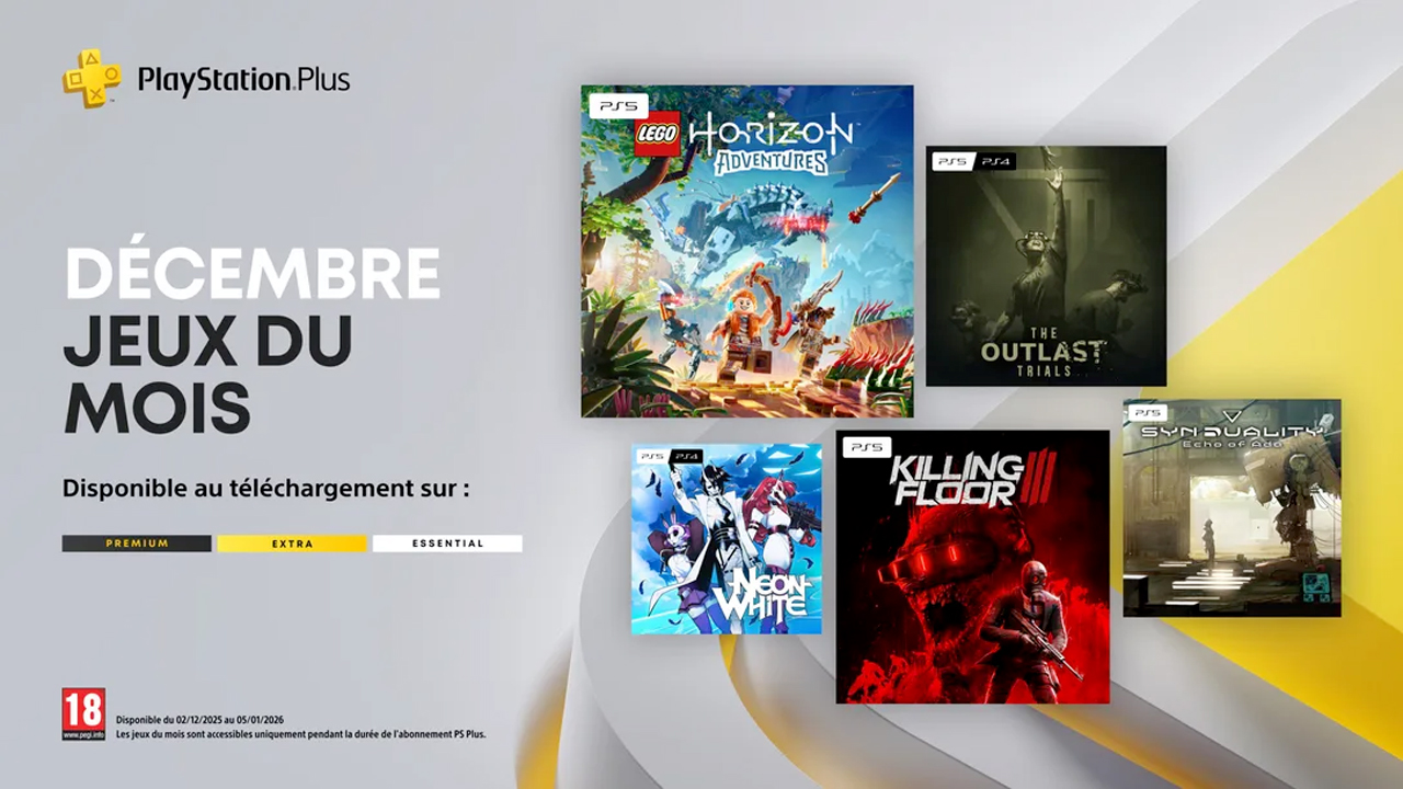 LEGO Horizon Adventures, Killing Floor 3, The Outlast Trials, Synduality Echo of Ada et Neon White seront disponibles pour les membres PlayStation Plus à partir du mardi 2 décembre.