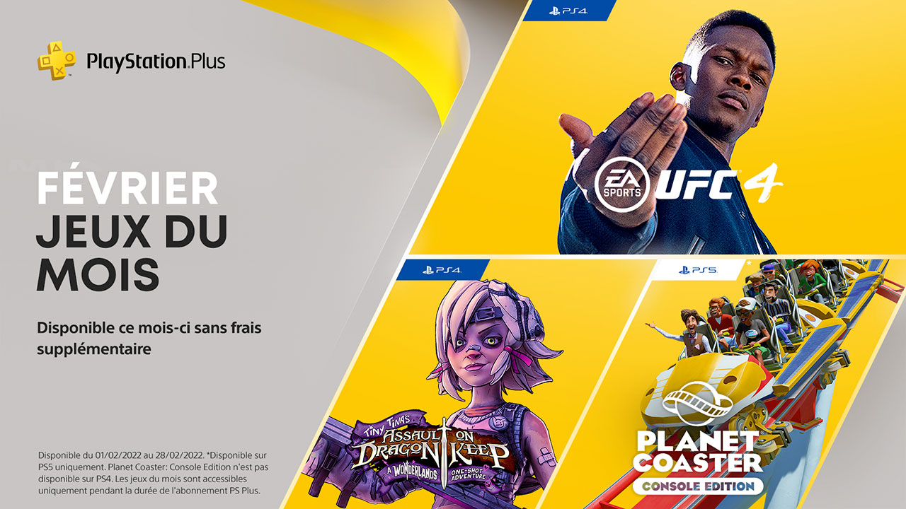 Que ce soit avec vos réflexes, des lancers de dés ou une gestion habile, forgez votre destin avec la liste des jeux PlayStation Plus du mois de février. Allez-vous plutôt entrer dans l’Octogone avec EA Sports UFC 4, prendre des châteaux d’assaut dans Tiny Tina et la Forteresse du Dragon : Une aventure merveilleuse ou construire des parcs d’attraction dans Planet Coaster: Édition console ? Ces trois jeux rejoignent le PlayStation Plus le 1er février.