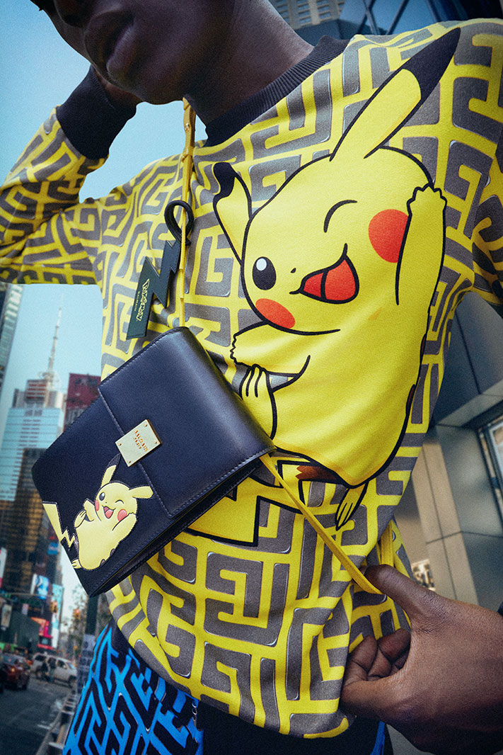 Olivier Rousteing et son équipe de conception ont également été inspirés par les couleurs éclatantes de Pokémon et son iconographie colorée. Sweats, vestes et pièces oversize reprennent intelligemment les codes graphiques audacieux que l’on connaît à Pokémon, et nombreux accessoires sont un croisement ingénieux entre les sacs signature de Balmain et les illustrations Pokémon.