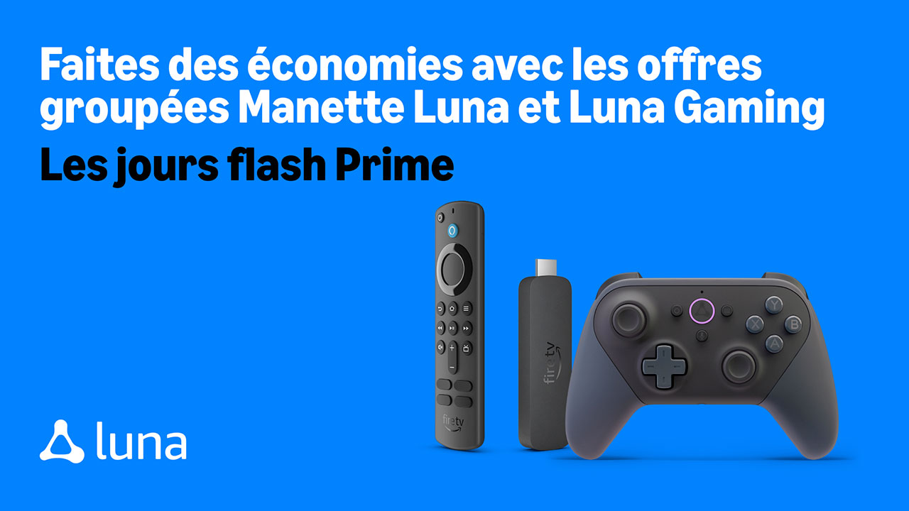 Les jours flash Prime d’Amazon sont de retour en 2025 ! Cette année, nous proposons des offres exceptionnelles sur la manette Amazon Luna et certains packs Fire TV disponibles aux États-Unis, au Canada, au Royaume-Uni, en Allemagne, en France, en Italie, en Espagne, aux Pays-Bas, en Pologne, en Suède et en Belgique.