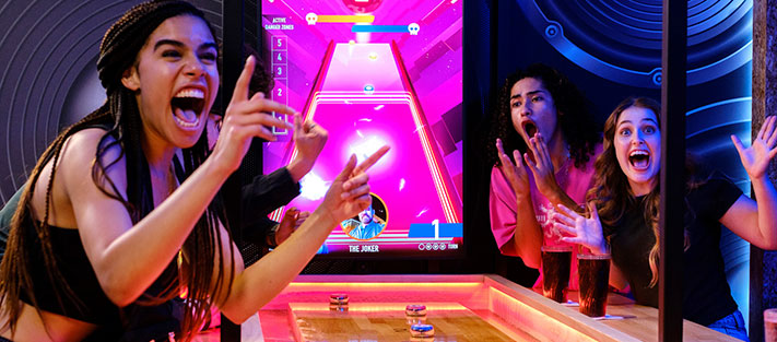 En partenariat avec le studio anglais CONDUCTR à l’origine du Supercharged Shuffleboard, ce sont 5 jeux interactifs et dynamiques qui se jouent en équipes de 2 à 8 joueurs revisitant des grands classiques du shuffleboard. Matt Daly : “Nous sommes ravis de voir notre Supercharged Shuffleboard arriver à Paris. Au pays de la pétanque, aucun doute que les Français vont l’adopter !”.
