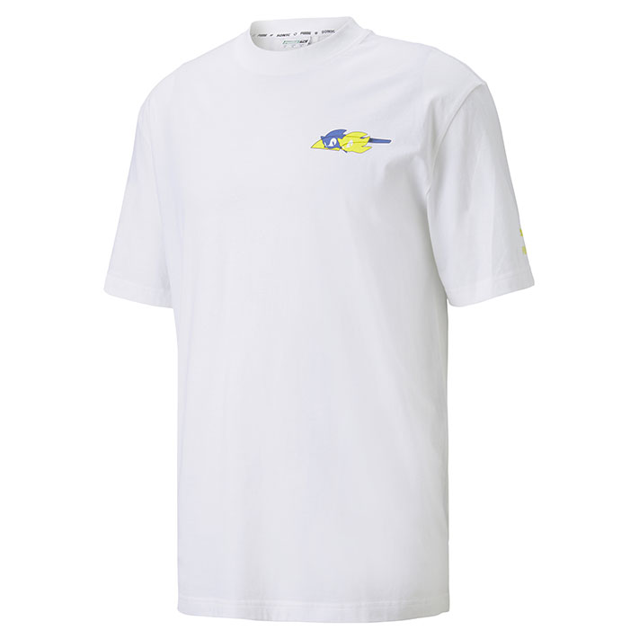 Espiègle comme Sonic et stylée comme PUMA, la collection PUMA x SONIC se compose de la célèbre sneaker RS-X³, proposée en deux coloris avec une grille semi-transparente blanche ou noire, des couleurs vives et une touche dorée, le tout en taille adulte et enfant. A porter fièrement avec le hoodie bleu vif ou noir brillant, les t-shirts illustrés devant comme derrière et enfin le très élégant t-shirt AOP (All Over Print), pour faire fureur sur les pistes qu’elles soient urbaines, de danse ou de course. Enfin, la gamme PUMA x SONIC s’offre une série de vêtements, de chaussures et d’accessoires assortis pour les enfants, ornés d’imprimés sympas aux couleurs du hérisson bleu.
