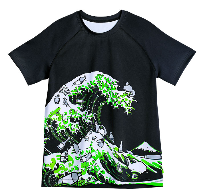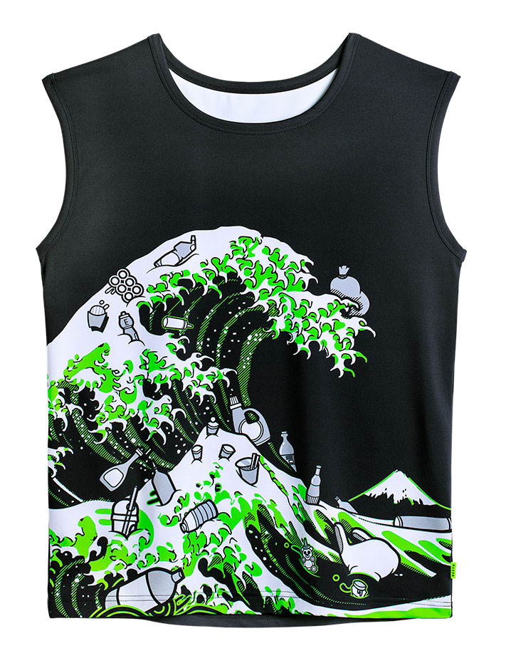 Les vêtements, ornés de la version stylisée de la célèbre estampe japonaise de la Grande Vague de Kanagawa, sont conçus pour faire prendre conscience du problème de la pollution marine par les plastiques et financeront les efforts de réduction des déchets plastiques marins afin de protéger les océans et leurs habitants.