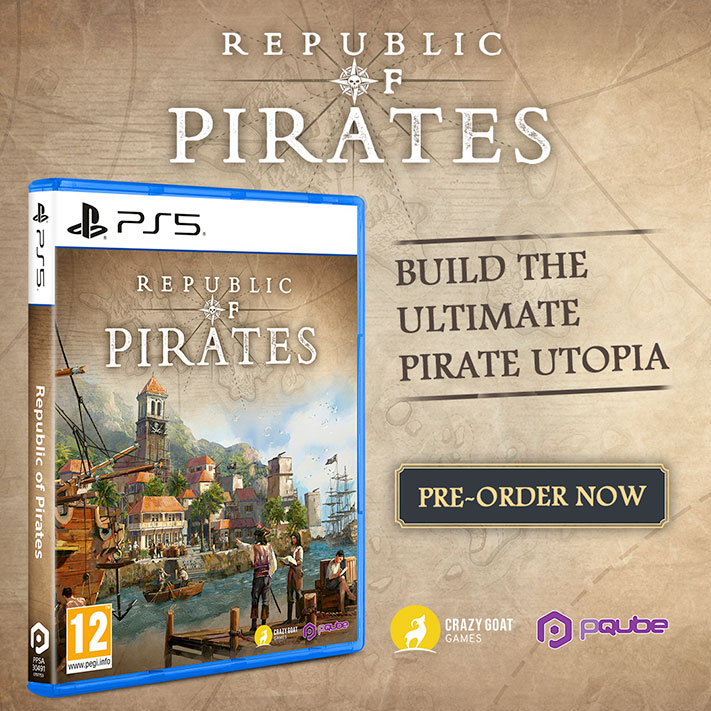 PQube, Crazy Goat Games et Maximum Entertainment France ont annoncé que Republic of Pirates, le jeu de construction de ville intrépide avec des combats navals en temps réel, sera disponible en édition physique sur PlayStation 5 le 25 septembre 2025.