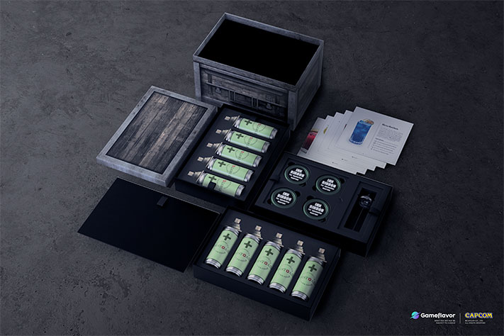 Plus qu’une boisson, le coffret collector de spray de premiers soins Resident Evil sert de portail aux joueurs souhaitant revivre l’émotion et se replonger dans les souvenirs de la franchise. Chaque élément de la boîte, allant de l’emballage aux boissons individuelles, ont été soigneusement conçu pour incarner l’univers Resident Evil.