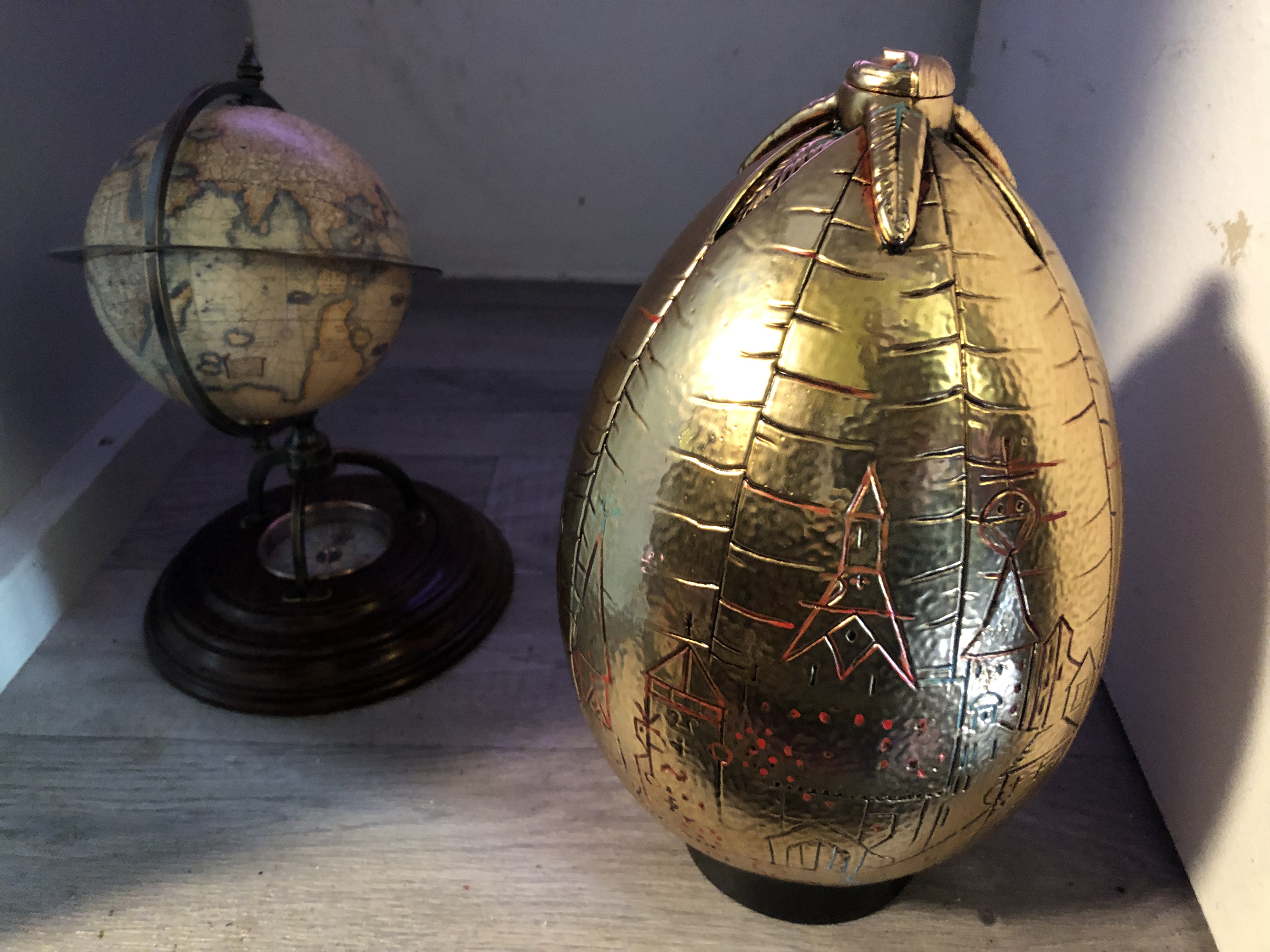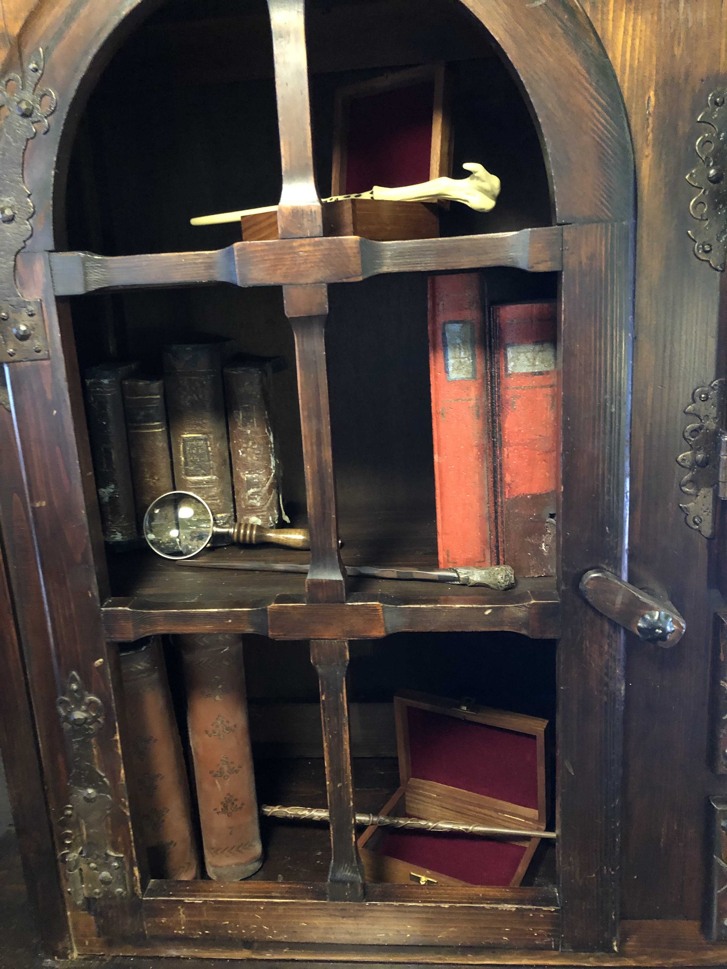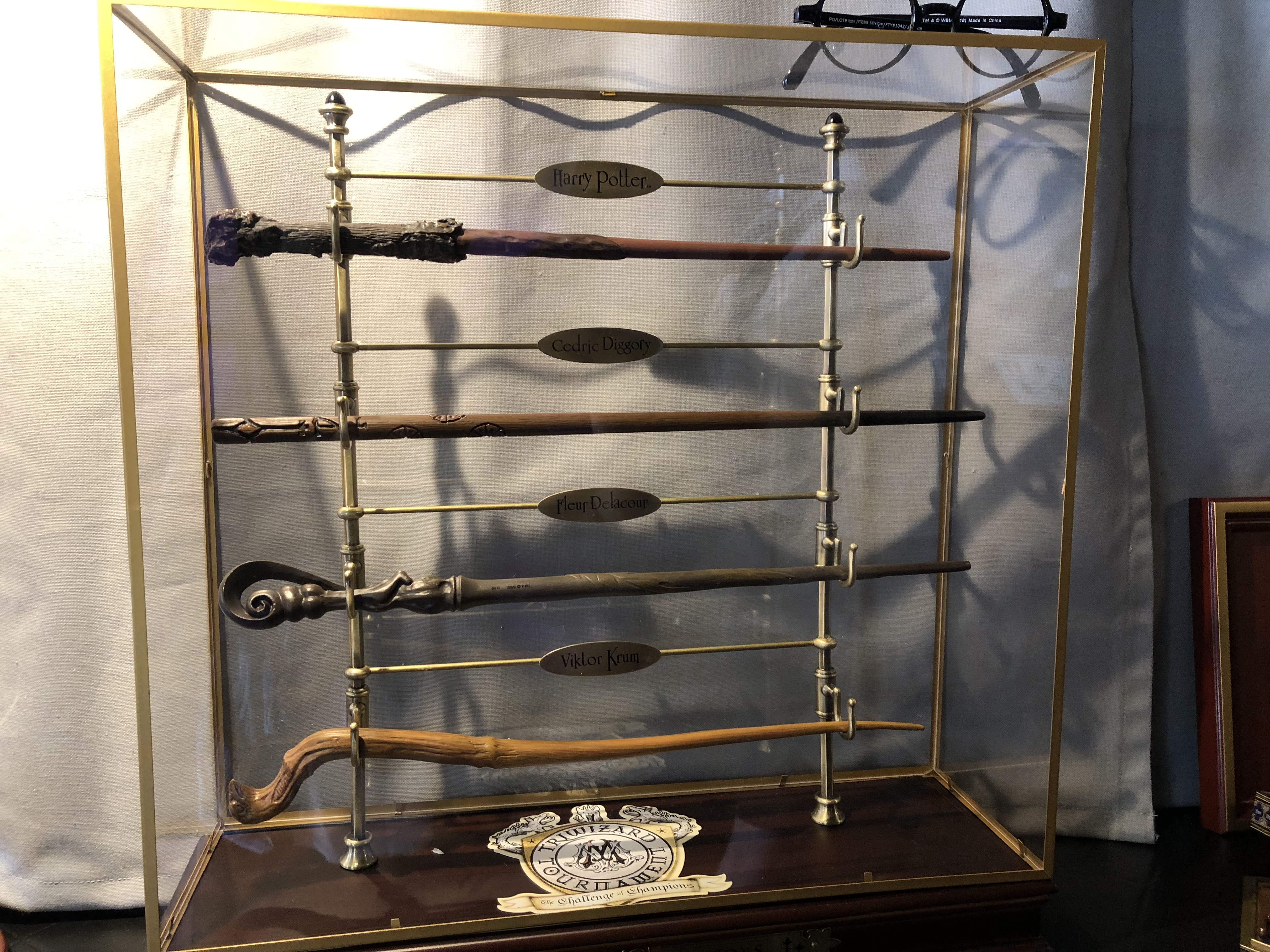 À l’intérieur du Magicobus, l’espace était assez étroit (tel que l’on peut l’imaginer dans le livre et le film) et était décoré de quelques accessoires du film disponibles dans la boutique officielle Wizarding World : l’œuf de la coupe de feu, la pierre philosophale, un chocogrenouille, la canne de Lucius Malefoy, le retourneur de temps, la carte du maraudeur, le journal de Jedusor… Au fond du bus, un niffleur vous attendait sur le lit afin de passer au 3ème photocall !