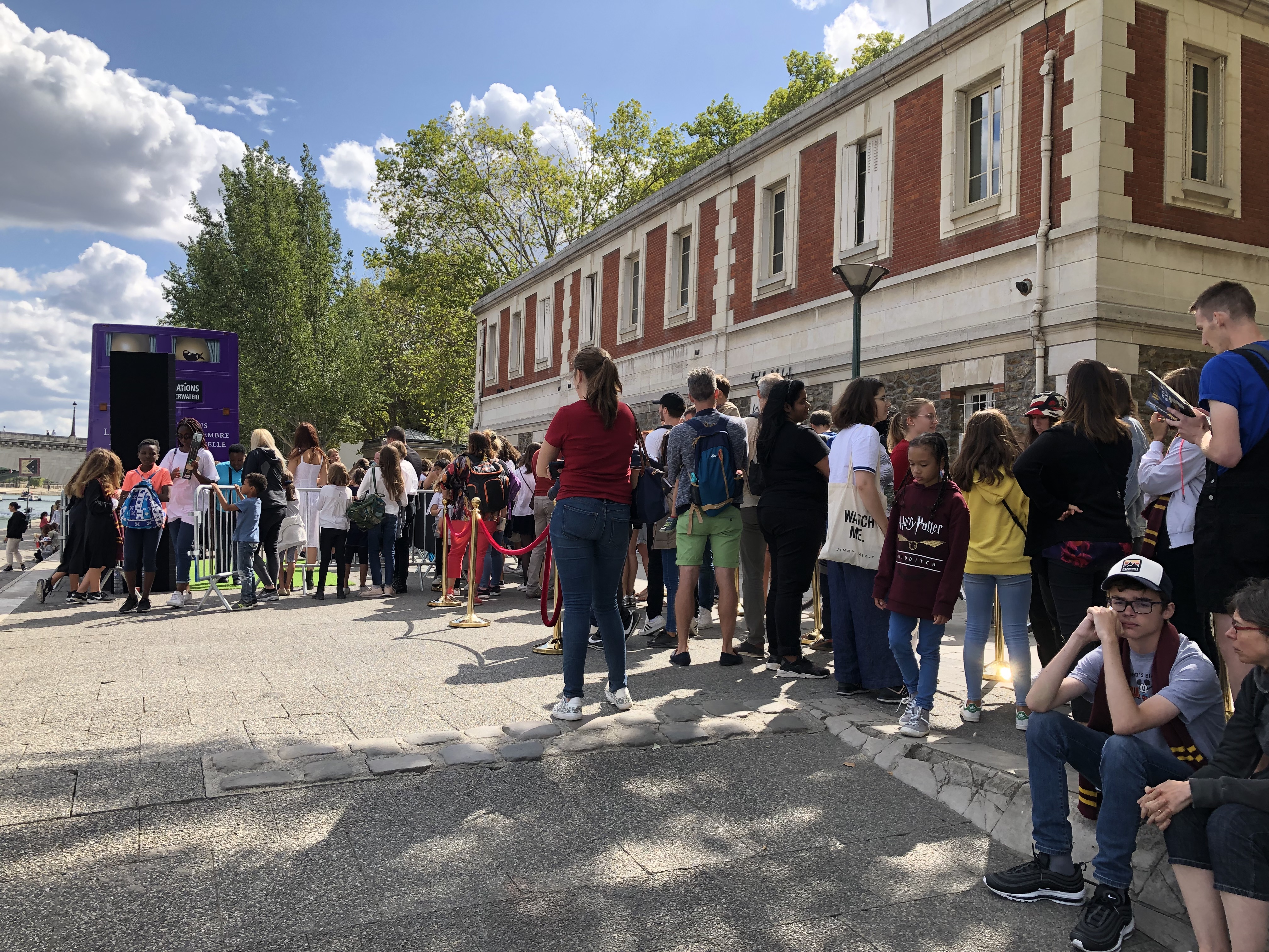 Pour fêter le Retour à Poudlard, les plus hardis ont campé la veille sur place, afin d’être les premiers à franchir le palier du célèbre bus. L’événement connaissant un véritable succès, il fallait s’armer de patience car le temps d’attente était de minimum 3-4h. Les personnes arrivant à partir de 12h se sont même vues refuser l’accès à la file, le temps d’attente dépassant les 10h !