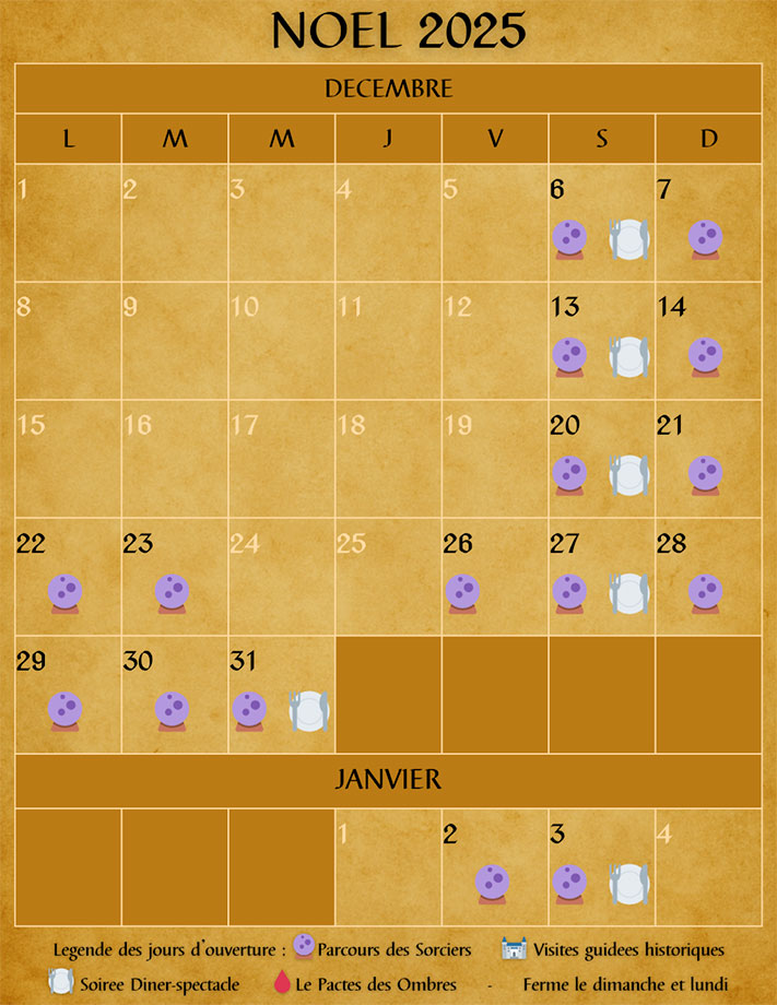 - Halloween : les 18, 24, 25, 30 et 31 Octobre et le 1er Novembre 2025