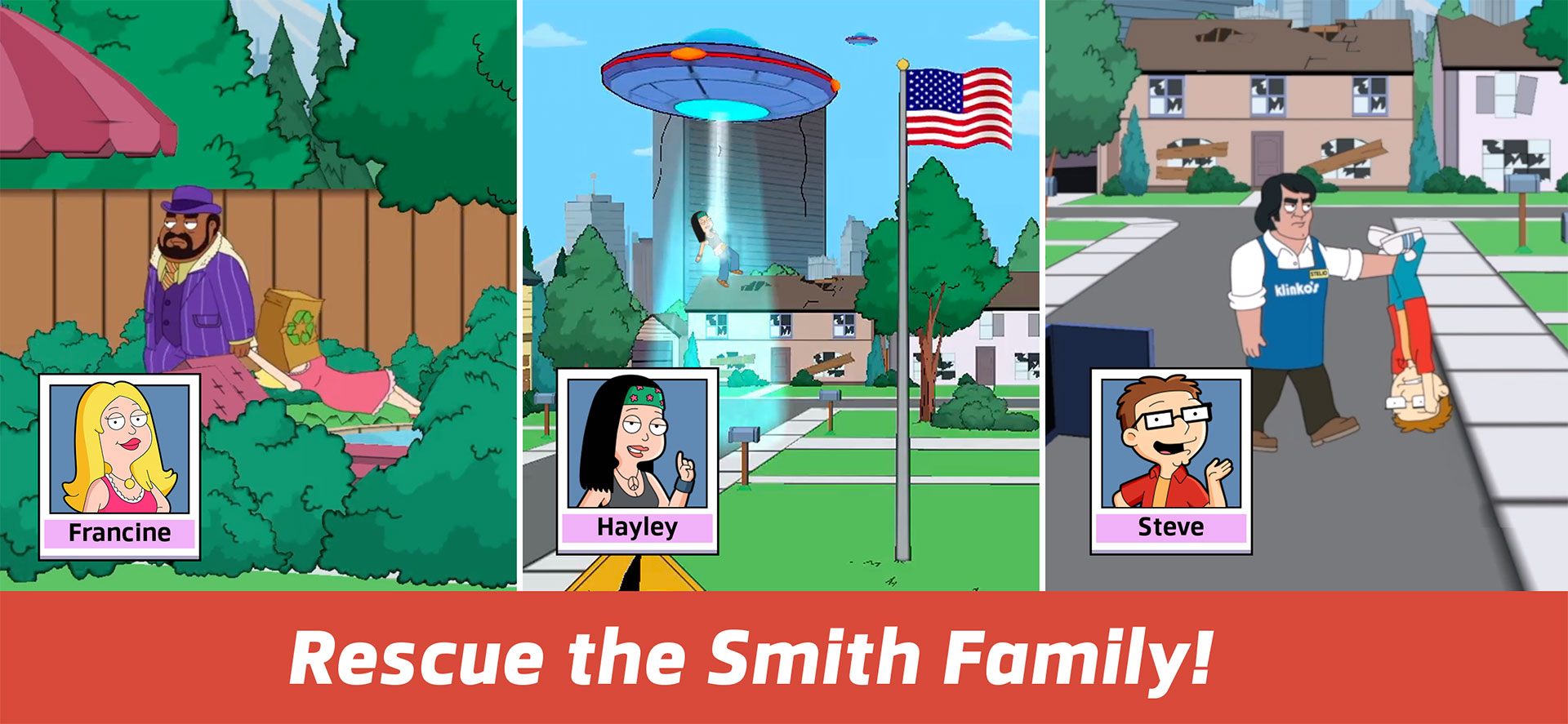 American Dad! Apocalypse Soon est un tout nouveau jeu de rôles et de stratégie inspiré de la très populaire sitcom animée de TBS. Il permettra aux fans d’incarner le personnage de la série, l’agent de la CIA, Stan Smith. Celui-ci s’engagera dans la mission la plus importante de sa vie, c’est-à-dire sauver sa famille d’une invasion extraterrestre.