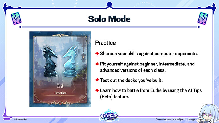 Les joueurs les plus expérimentés peuvent désormais affronter les decks qu’ils ont créés afin de tester leur viabilité et d’y apporter des ajustements, tandis que les novices peuvent apprendre à combattre grâce à la nouvelle fonctionnalité de conseil via l’IA.