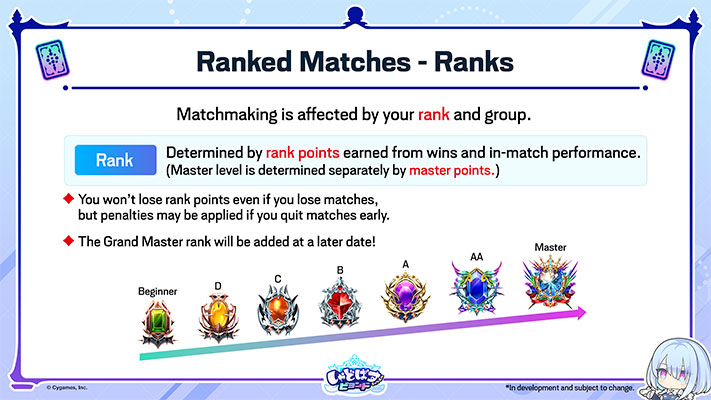 Pour les joueurs classés de « Beginner » à « AA », les RP sont attribués en fonction des résultats des matchs et d’autres conditions. Les joueurs « Masters » s’affrontent en utilisant les MP, ou « master points », un système de points distinct.