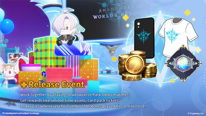 Gagnez diverses récompenses, notamment des avatars, des tickets pour des paquets de cartes et des rupies, en disputant des matchs aux tables de combat du Shadowverse Park pendant la durée de l’événement.